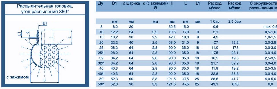 Распылительные головки из нержавеющей стали шарообразной формы применяются, в основном, для мойки внутренней поверхности различных резервуаров и емкостей. В пищевой промышленности их начали использовать более ста лет тому назад. Распылительные головки имеют разные диаметры и принцип крепления (резьбовой, зажимной).